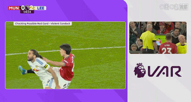 04月14日讯 英超第32轮,曼联对阵利兹联。55分钟, VAR介入,主裁亲自观看回放,判罚利桑德罗拉拽勒温头发,被红牌罚下。